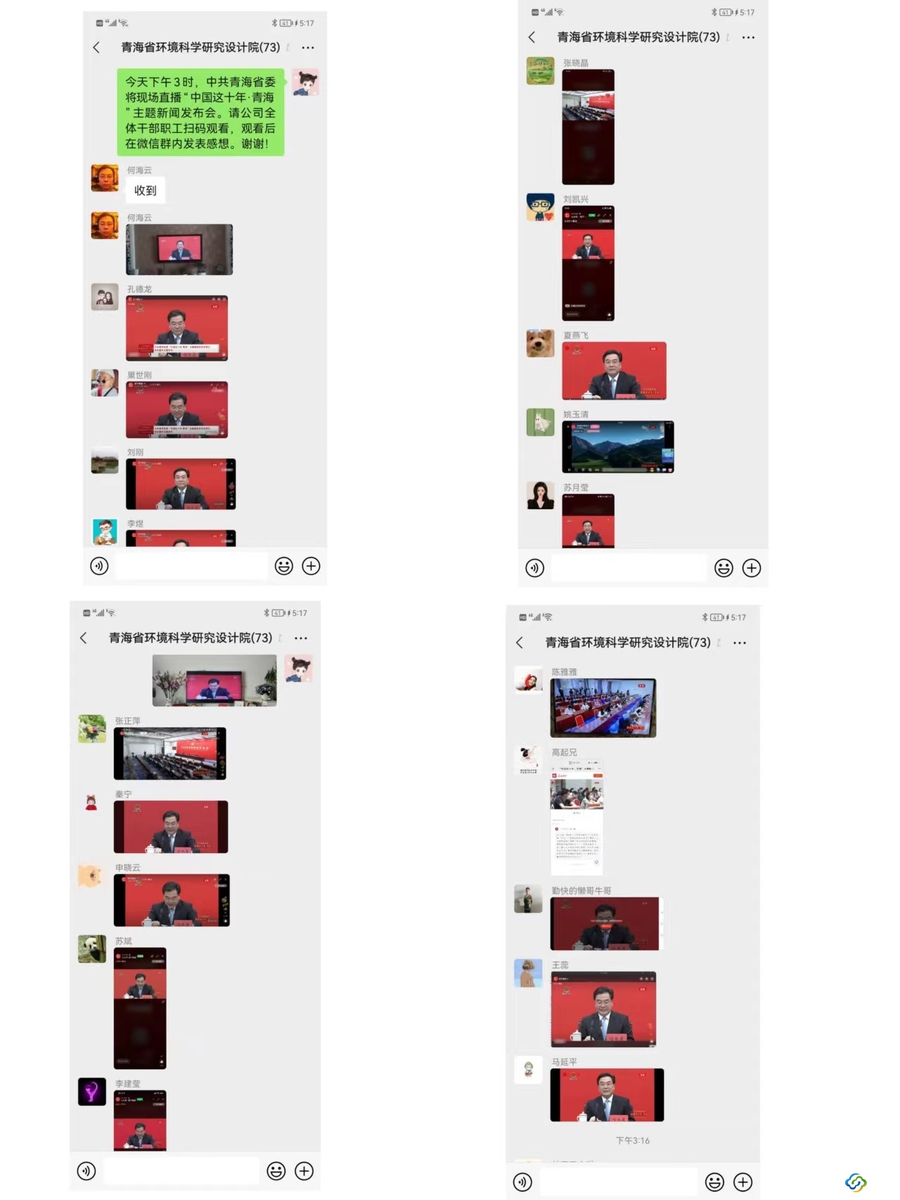 黨支部書記何海云同志表示,觀看了“中國這十年·青?!敝黝}新聞發(fā)布會(huì)倍感振奮。青海省委書記信長星同志從生態(tài)文明建設(shè)、高質(zhì)量發(fā)展提質(zhì)增效、精準(zhǔn)脫貧全面勝利、民族團(tuán)結(jié)進(jìn)步碩果累累、黨的建設(shè)全面加強(qiáng)等方面詳細(xì)介紹新時(shí)代這十年青海牢記囑托闖新路的光輝歷程和巨大成就,必將進(jìn)一步凝聚起全省上下奮力開創(chuàng)大美青?,F(xiàn)代化建設(shè)新篇章的強(qiáng)大力量。公司將始終堅(jiān)持以習(xí)近平新時(shí)代中國特色社會(huì)主義思想為指導(dǎo),始終牢記習(xí)近平總書記的殷切囑托,堅(jiān)持以高質(zhì)量黨建引領(lǐng)高質(zhì)量發(fā)展,圍繞生態(tài)保護(hù)“國之大者”“省之大要”的根本任務(wù),強(qiáng)化自身環(huán)境科學(xué)技術(shù)優(yōu)勢(shì),不斷深化國企改革三年行動(dòng),注重人才培養(yǎng)、科學(xué)研究、專業(yè)技術(shù)服務(wù)等方面協(xié)調(diào)發(fā)展,發(fā)揮國企環(huán)保科技工作者的有力作為和國有企業(yè)的使命擔(dān)當(dāng),以更加飽滿的工作熱情和更加奮發(fā)有為的工作態(tài)度,為保障公司高質(zhì)量發(fā)展貢獻(xiàn)自己的力量,在青海新的黃金十年再建新功,以優(yōu)異成績迎接黨的二十大勝利召開。